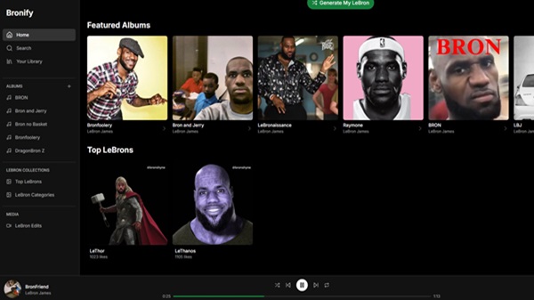 Bronify’s interface is modern, elegant, and reflective of LeBron’s brand style—bold, clean, and powerful. The color scheme blends dark tones with vibrant accents, inspired by the jerseys and aesthetics associated with LeBron’s iconic NBA teams.